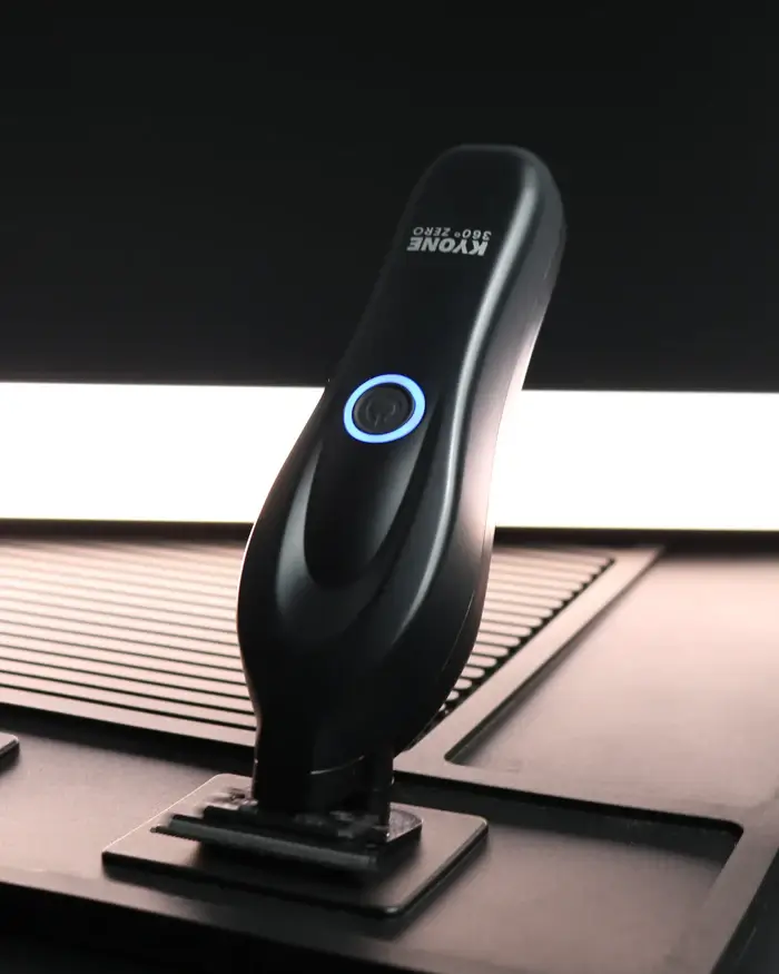 Designed for maximum control, visibility and precision, the Kyone 360⁰ Zero Trimmer offers everything a professional barber or stylist needs for expert-level detailing. With its updated blade, enhanced insulation, and powerful Carbon Brush Motor, this edition offers improved comfort, quieter operation, and even sharper performance, while maintaining the 360° visibility and ergonomic control that barbers love