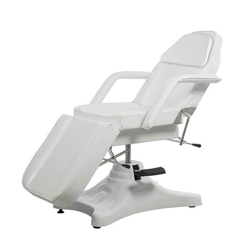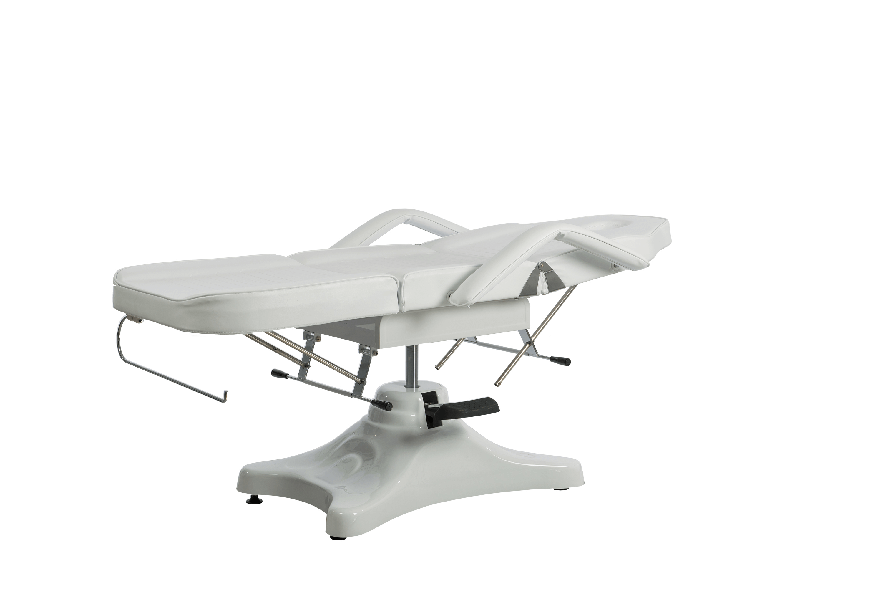 Functional 3-section bed with hydraulic pump that allows height adjustment. Backrest and footrest inclination are adjusted manually. Removable armrests. Black PVC upholstery of high quality and easy to clean.
