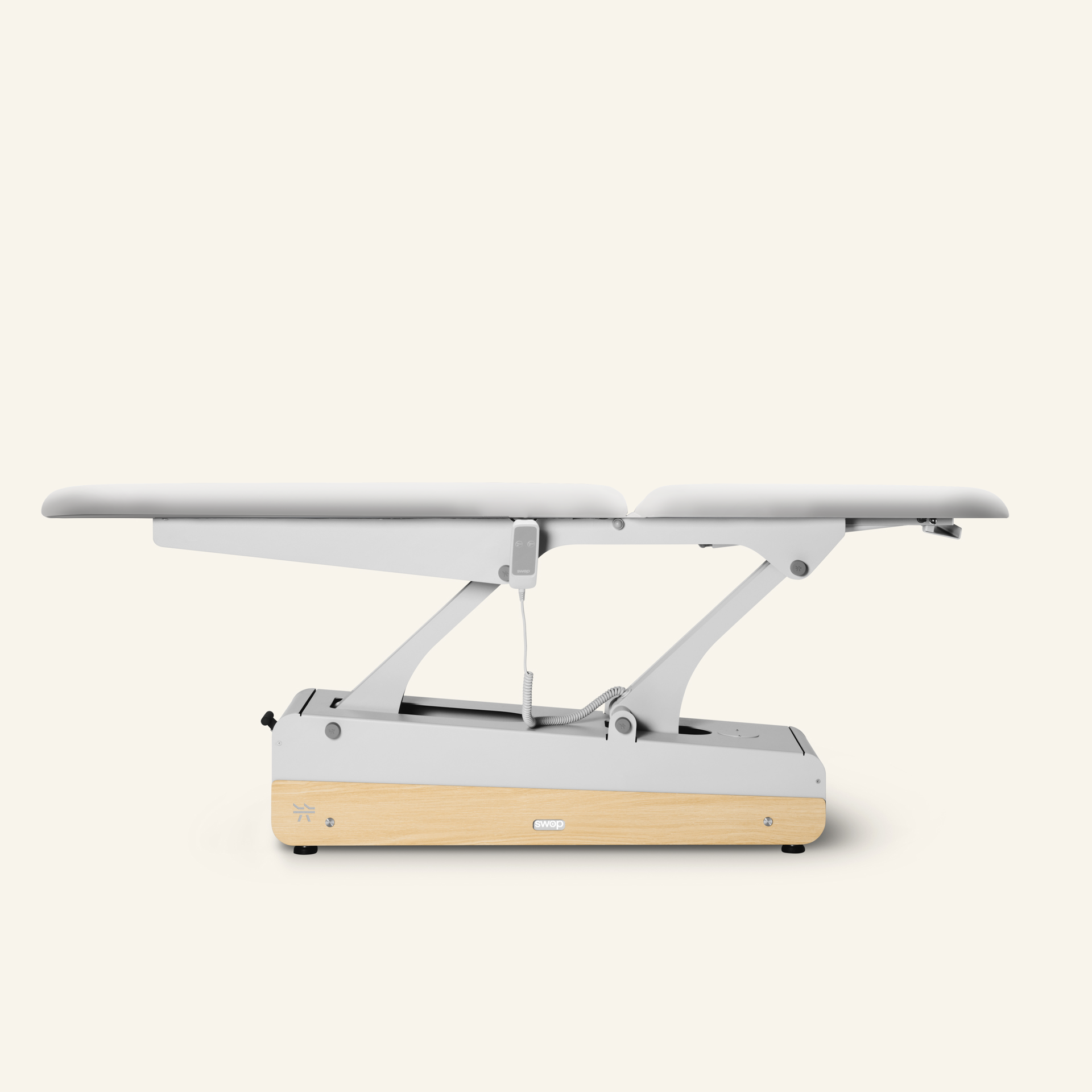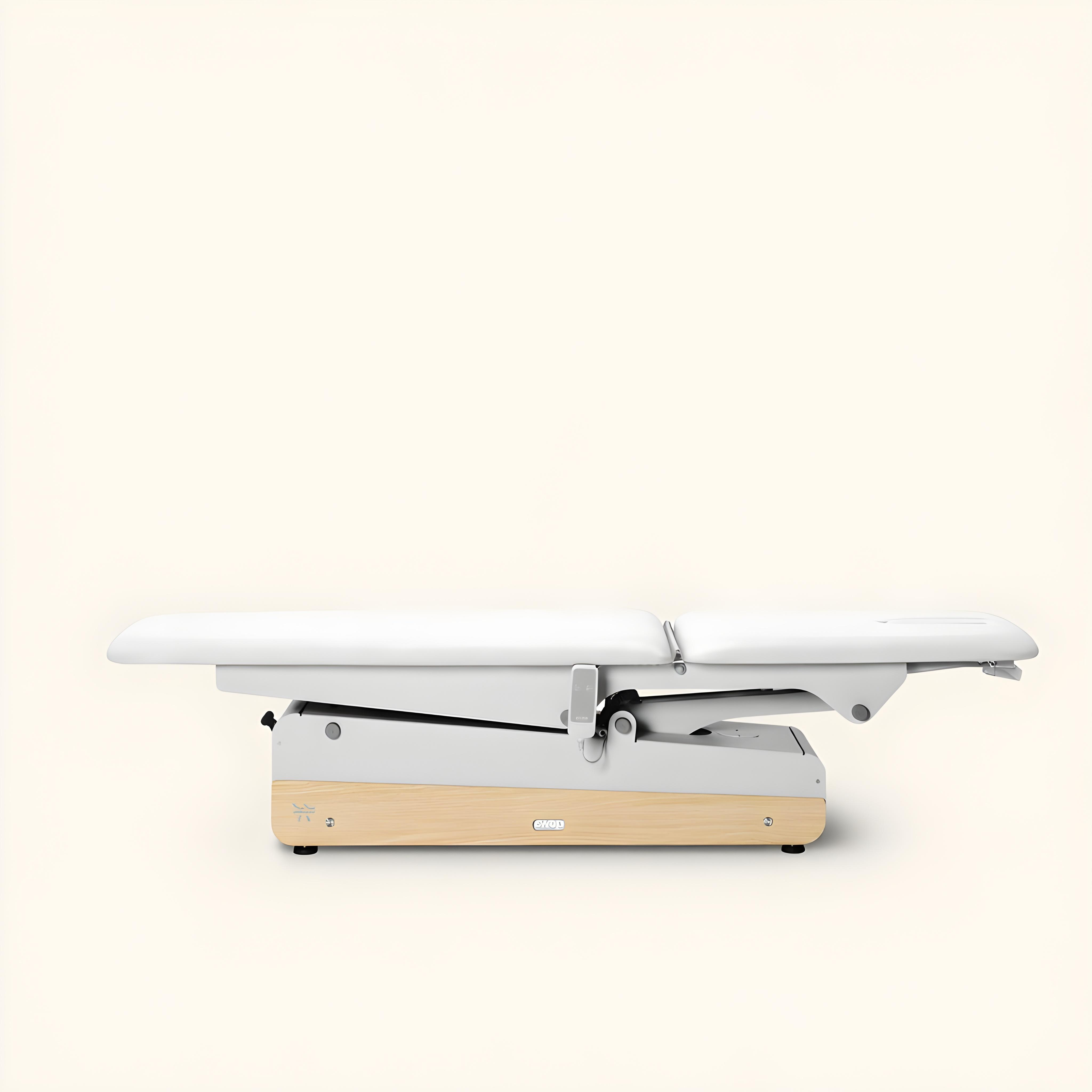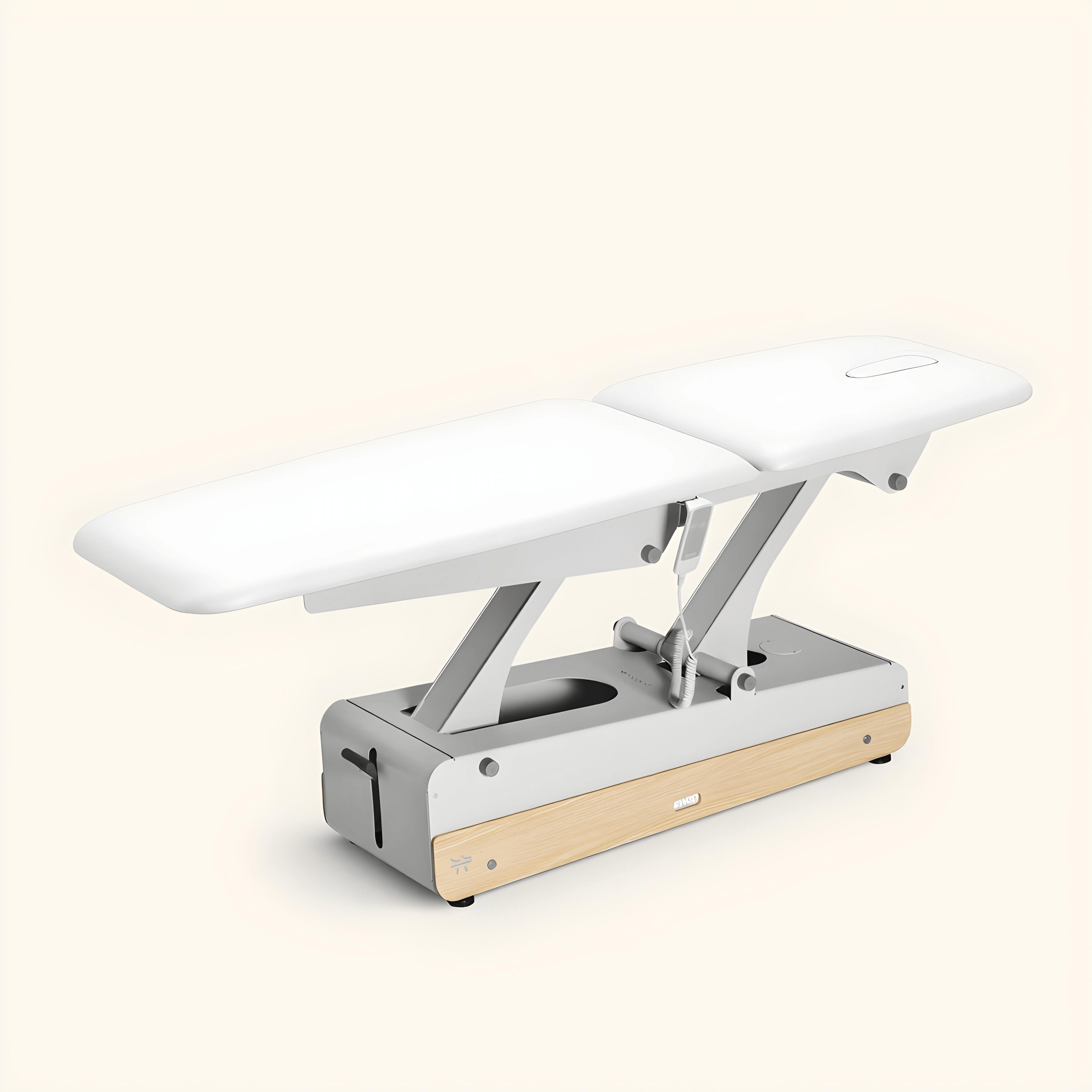 Electric 2-section table with a long headrest for lying or semi-sitting treatments. Unmatched flexibility with height-adjusting control and 360º wheels for easy movement.