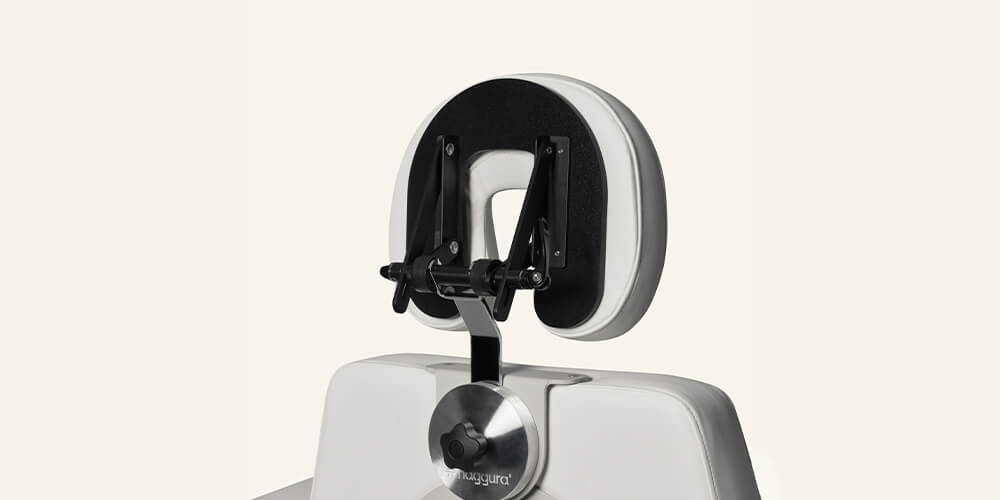 Offers maximum flexibility of positions thanks to its wide range of tilt and vertical adjustment. Ideal for hair treatments in the prone position. Cushion with soft and ergonomic foam upholstered with Naggura Silky.