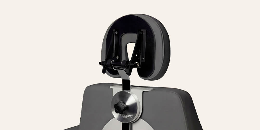 Offers maximum flexibility of positions thanks to its wide range of tilt and vertical adjustment. Ideal for hair treatments in the prone position. Cushion with soft and ergonomic foam upholstered with Naggura Silky.